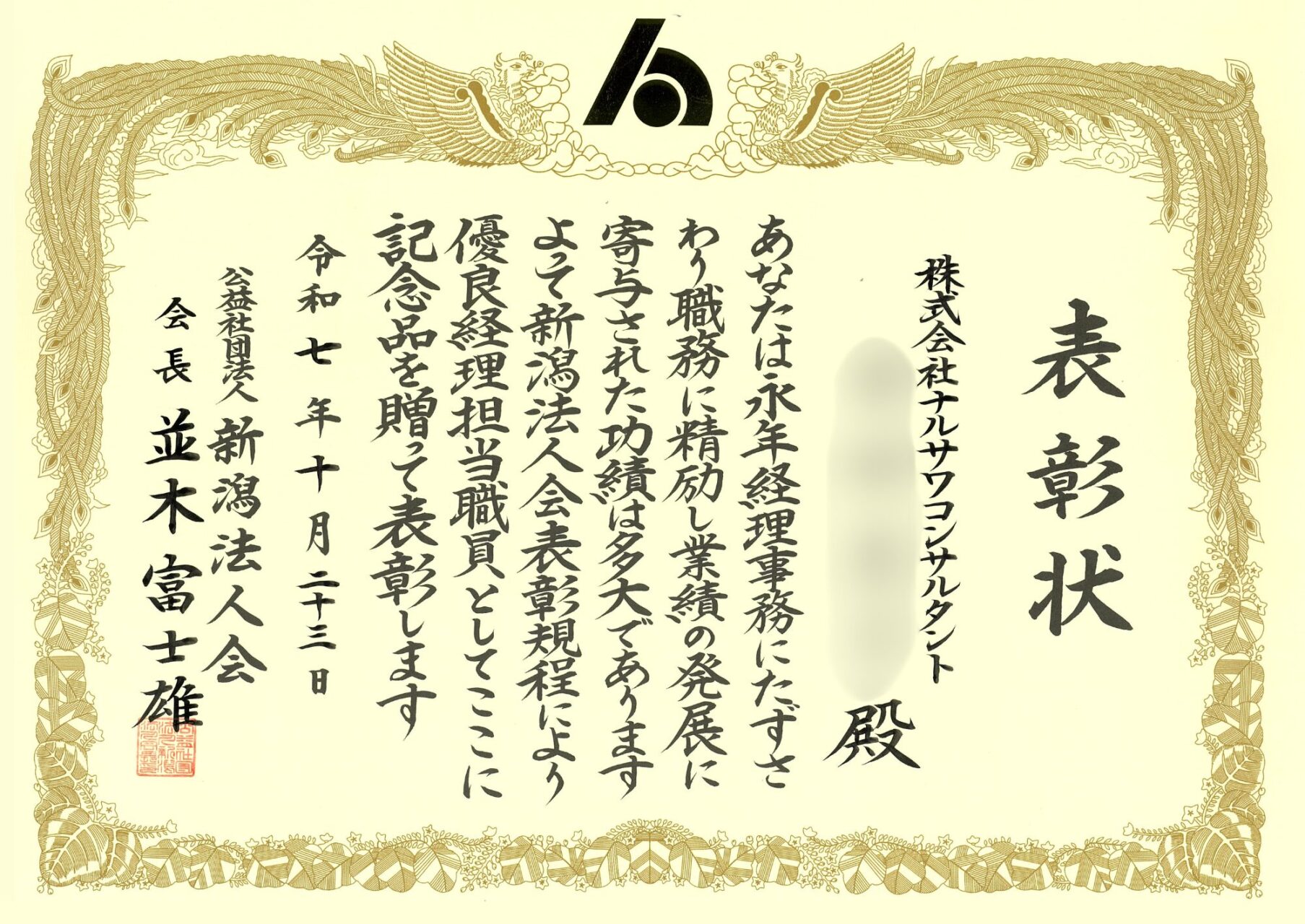 このたび弊社の経理担当者(本社並びに高田支店の計2名)が、公益社団法人新潟法人会より優良経理担当職員として表彰されました。