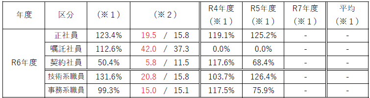 ※(区)は雇用管理区分(事務系職員・技術系職員/正社員・契約社員・嘱託社員・パート社員)